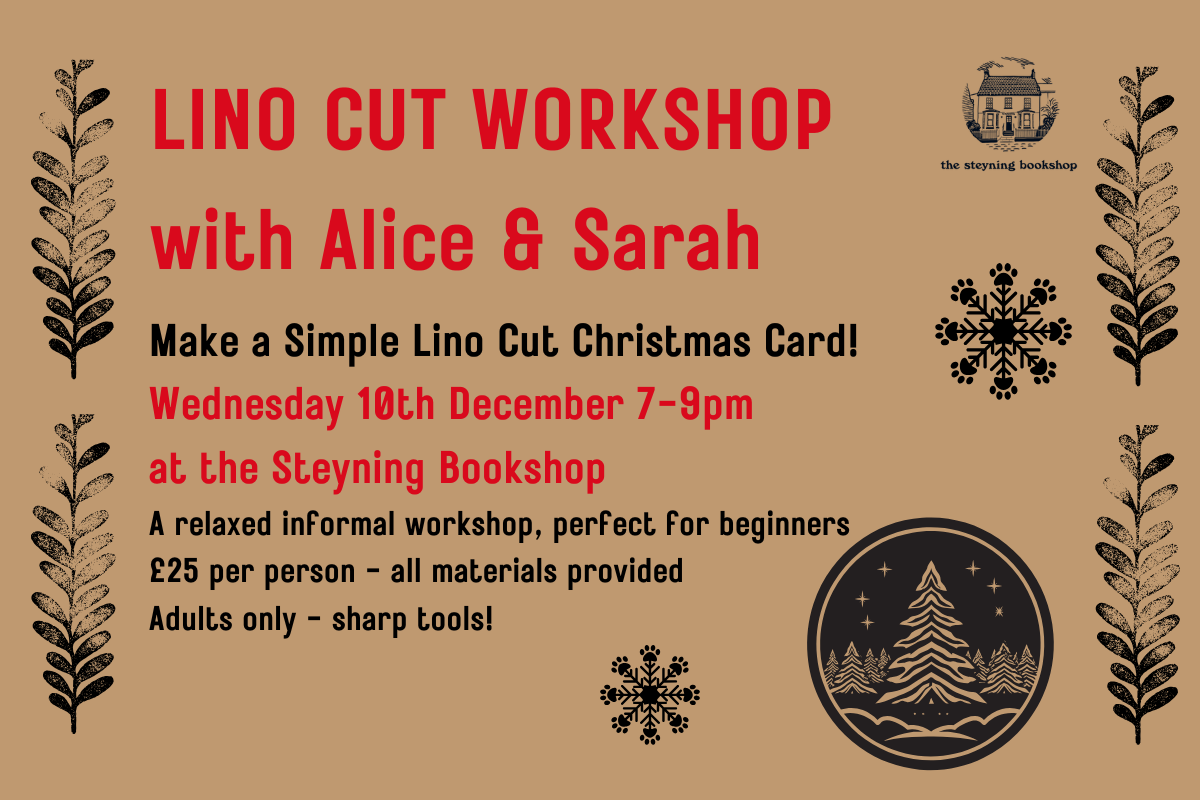 This workshop is for adults or older teens (sharp tools!) and is suitable for beginners. It will take place around the big kitchen table in the bookshop back kitchen. All materials are provided, but it’s a good idea to come with some simple design ideas in your mind (or on paper!). There will be drinks and Christmassy nibbles too!